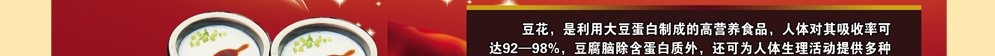 随着人们生活水平的提高,越来越多的人追求健康食品,豆花的营养价值比较高:黄豆中的主要营养成分如优质蛋白 、优质脂肪、卵磷脂、钙等等,具有养颜、抗衰老的作用。,一品豆花突破了南方传统豆花只放一勺白糖的吃法,一品豆花独具特色, 有多种不同口味,不论营养价值还是口感都远远超越之前的传统豆花,目标消费群可以说涵盖全年龄段的所有人群。项目发展前景好,市场大,投资小,风险低,回报快。我们坚持一次性投资终生受益的原则,店面的大小可以根据个人的经济情况做 出不同的选择,让你轻松拥抱财富。